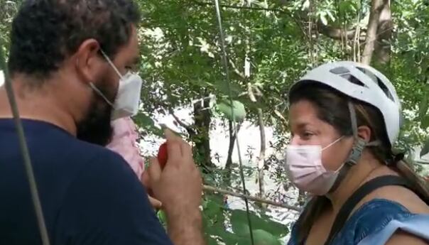 “Estaba en el árbol con mi mejor amiga (Michelle) y cuando iba a tirarme de la última cuerda le dije que se tirara ella primero para que me tomara fotos, pero me dijo: ‘No quiero, tírese usted’. Entonces me tiro y cuando empiezo a leer el rótulo solo me dio por llorar y llorar de la felicidad, de la emoción, no podía ni hablar. Demasiado lindo, no me lo esperaba”, contó toda emocionada.