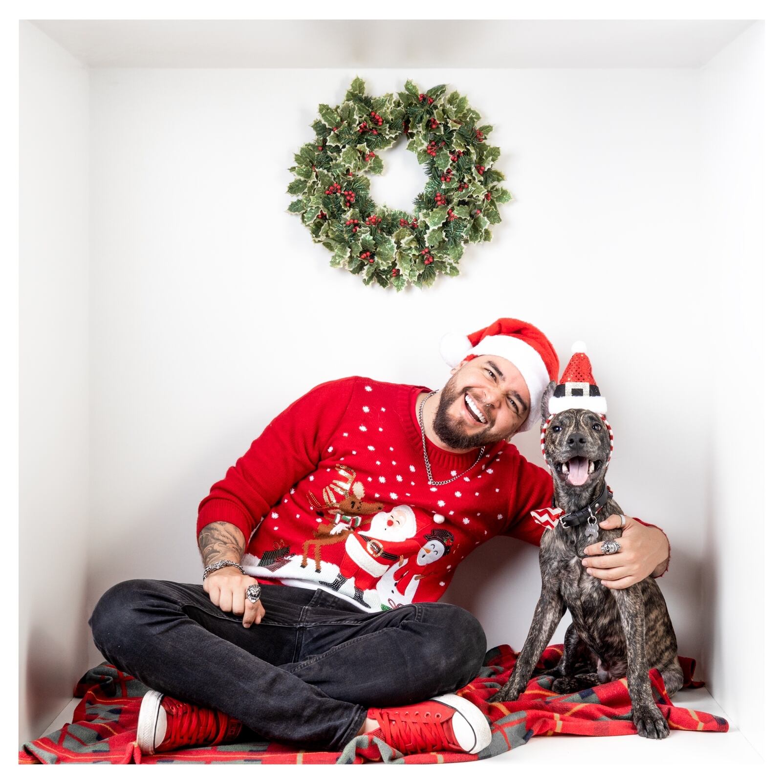 Logan se ha vuelto tan importante en la vida del también tatuador que para Navidad le compró varios regalos, como un collar con su debida placa, un hueso grande y una especie de rama de pino para perros para que deje la maña de estarle mordiendo las patas a la cama.