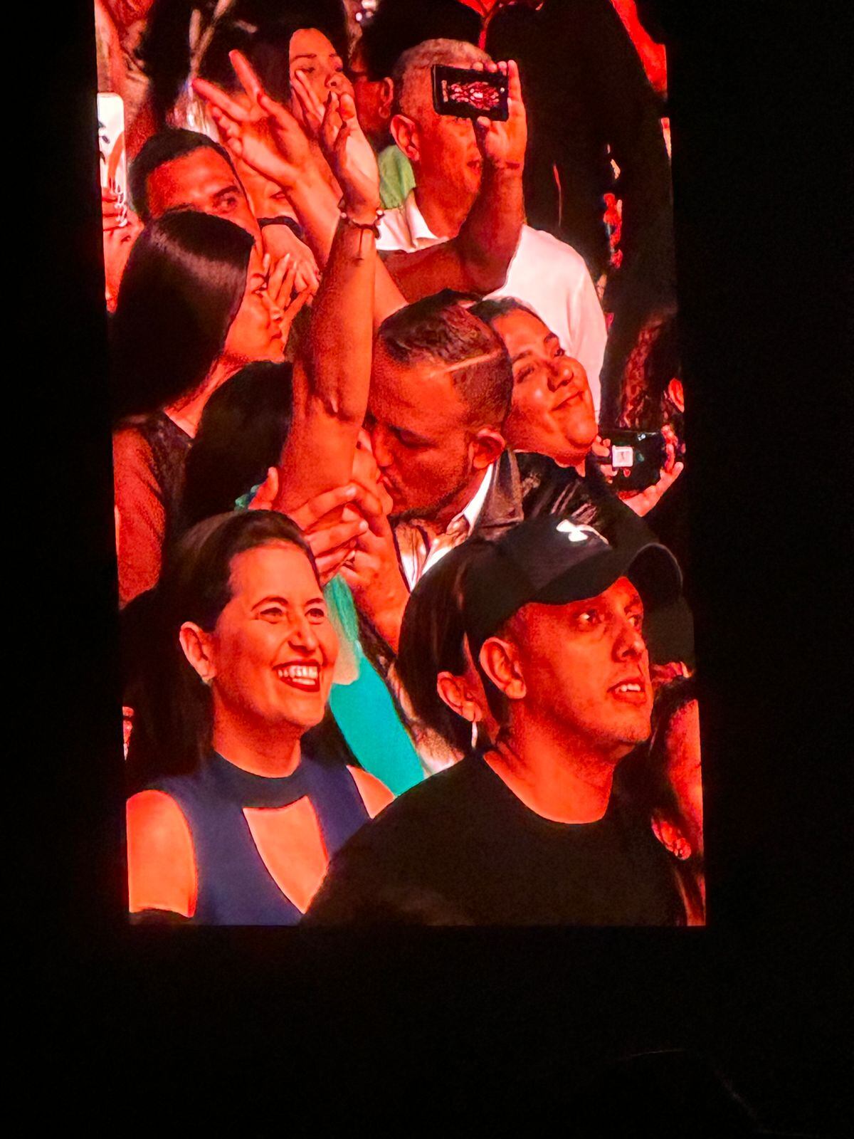 El cantante aprovechó para hacer una dinámica con el público, la famosa Kiss Cam, en la cual enfocaba varias parejas para que se dieran un beso