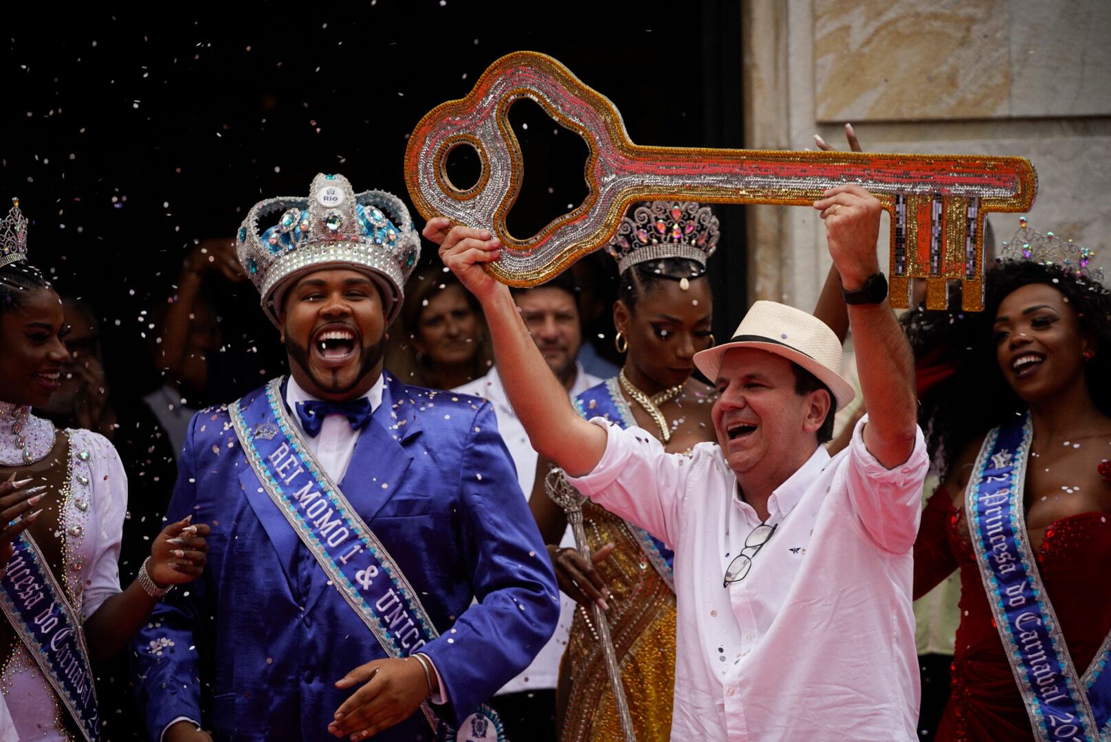 “El mayor espectáculo de la Tierra volvió (...) el carnaval es la mayor manifestación cultural de nuestra gente, el mayor símbolo de nuestro país”, dijo el alcalde Eduardo Paes al entregar este miércoles las llaves de la ciudad al Rey Momo, un acto simbólico que da inicio a los días de fiesta.