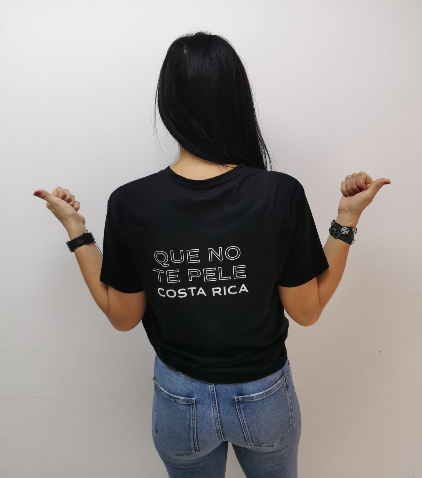 Caro se puso una camiseta negra con la leyenda “Que no te pele Costa Rica”, campaña que se creó para invitar a los costarricenses a salir a votar por medio de mensajes de famositicos.