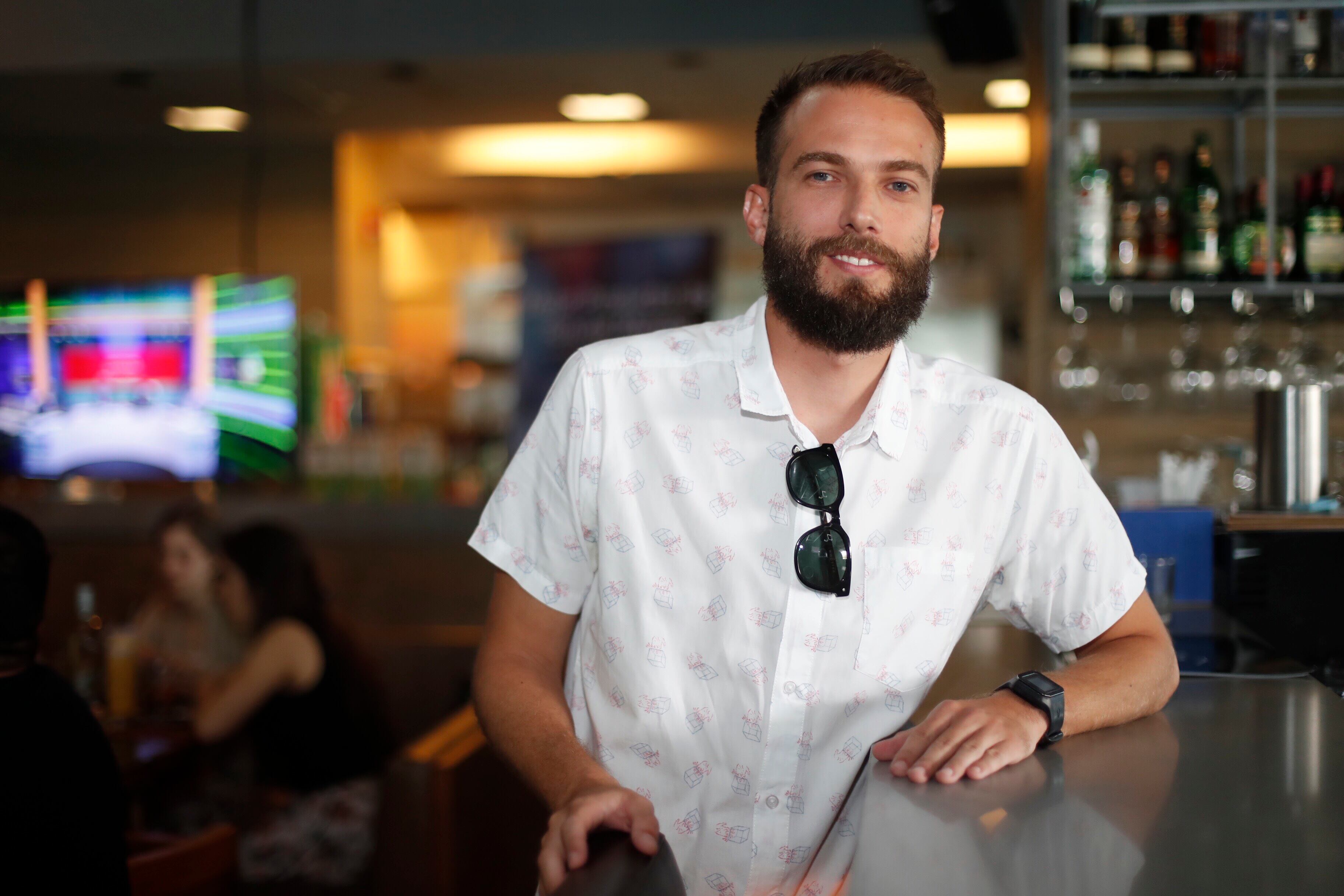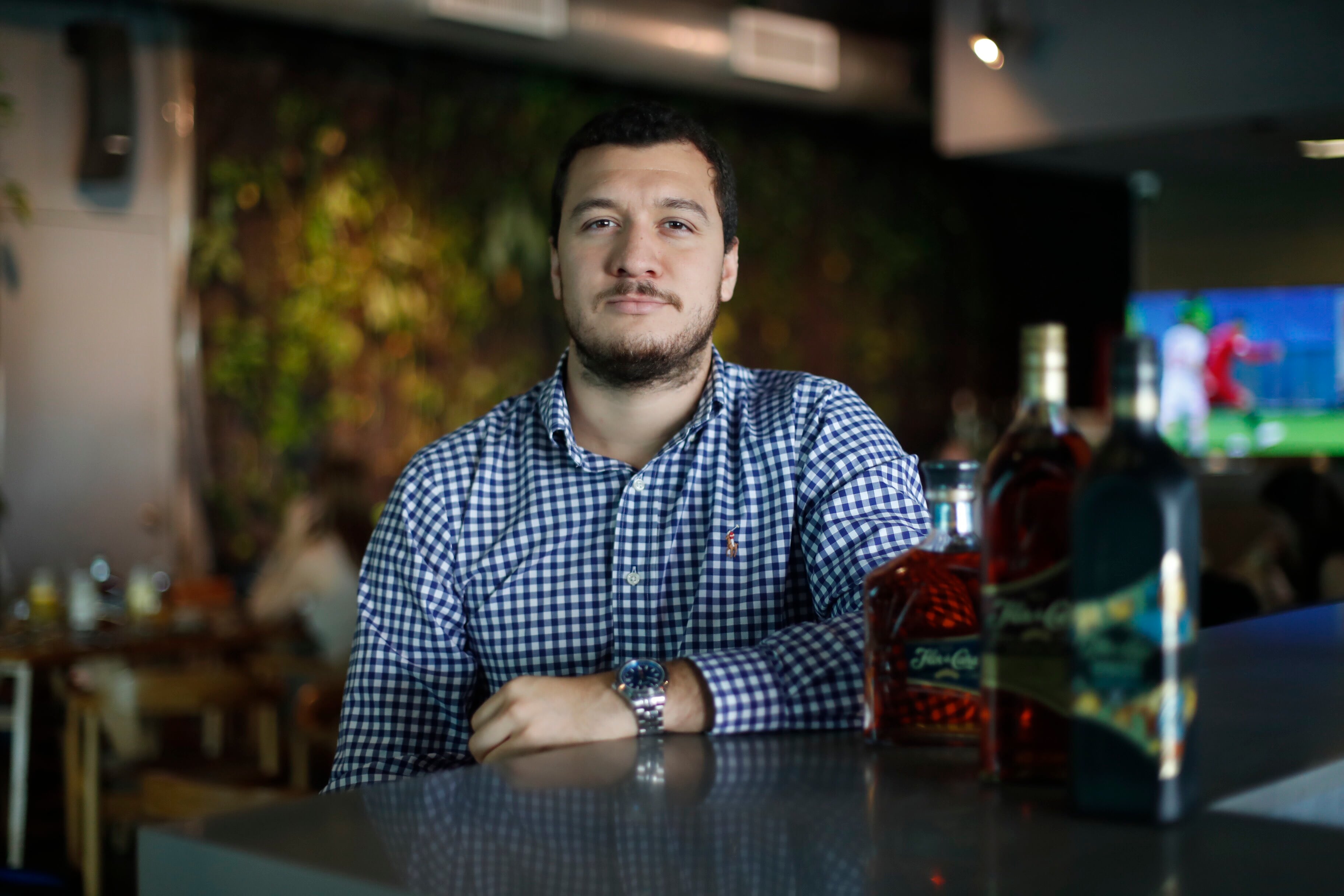 El artista fue uno de los faranduleros que invitó la marca Flor de Caña a ver el partido de España contra Portugal, este viernes al mediodía en el restaurante Santos , en Avenida Escazú.