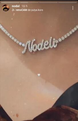 Belinda, que lució unas uñas con la palabra Nodal, le regaló a su novio una esclava con diamantes de la marca Tous con la que el cantante de “Se me olvidó” quedó más que encantado.
