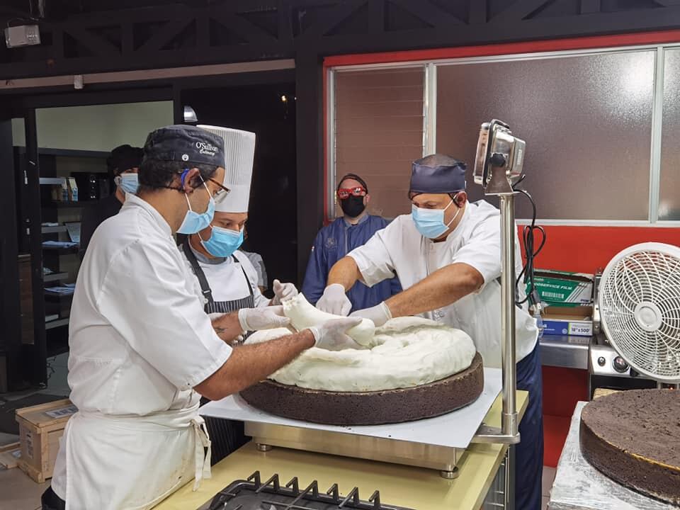 En la fabricación de esta galletota trabajaron 21 chef, que se dividieron en dos equipos, por la cantidad de horas y para evitar aglomeraciones en la cocina.