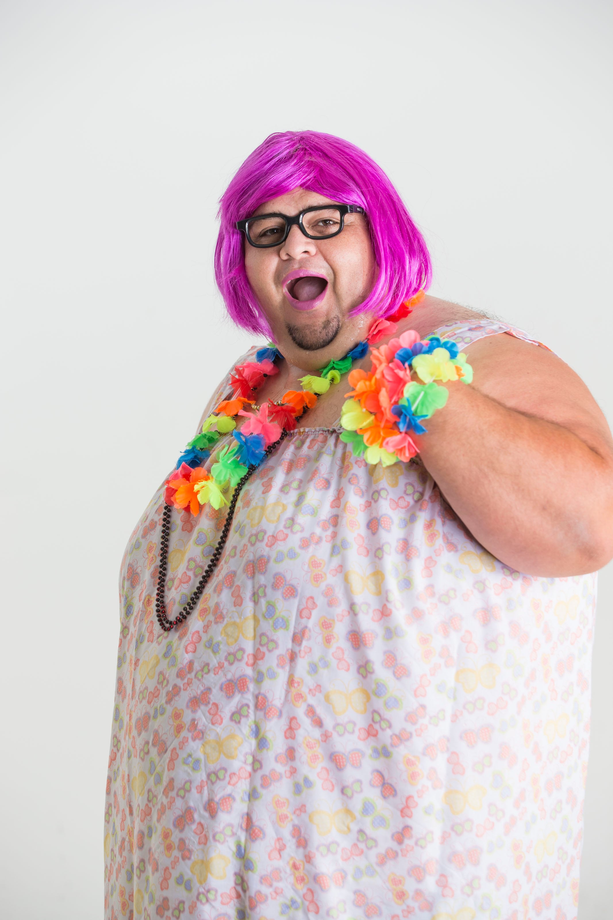 Para personificarla agarré unos chuicas y me los encaramé. Como la gorda resultó amante de las mariposas buscamos tela relacionada para hacerle un vestido. Ella es una gordita coqueta, de pelo teñido y que tiene alas y corona.