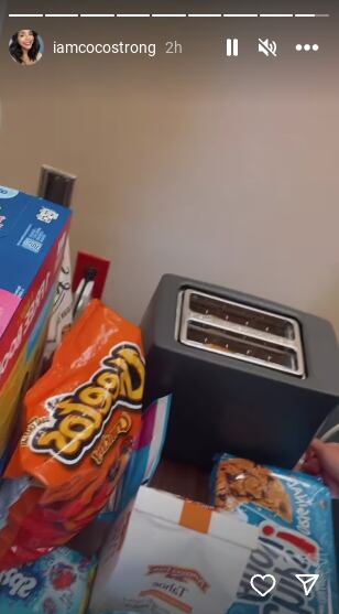 Sin mencionar una sola palabra, Coco mostró en una nueva historia en esa red social el rinconcito de su cuarto donde tiene algunas cositas para comer y, ¿adivinen?