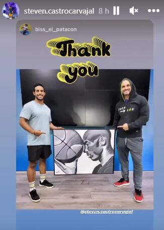 Él estuvo el martes como emprendedor invitado en el espacio ¡Qué buena tarde!, donde llevó algunos de sus cuadros, y Bismarck quedó como loco con uno que dibujó del basquetbolista Kobe Bryant y que al final le regaló.