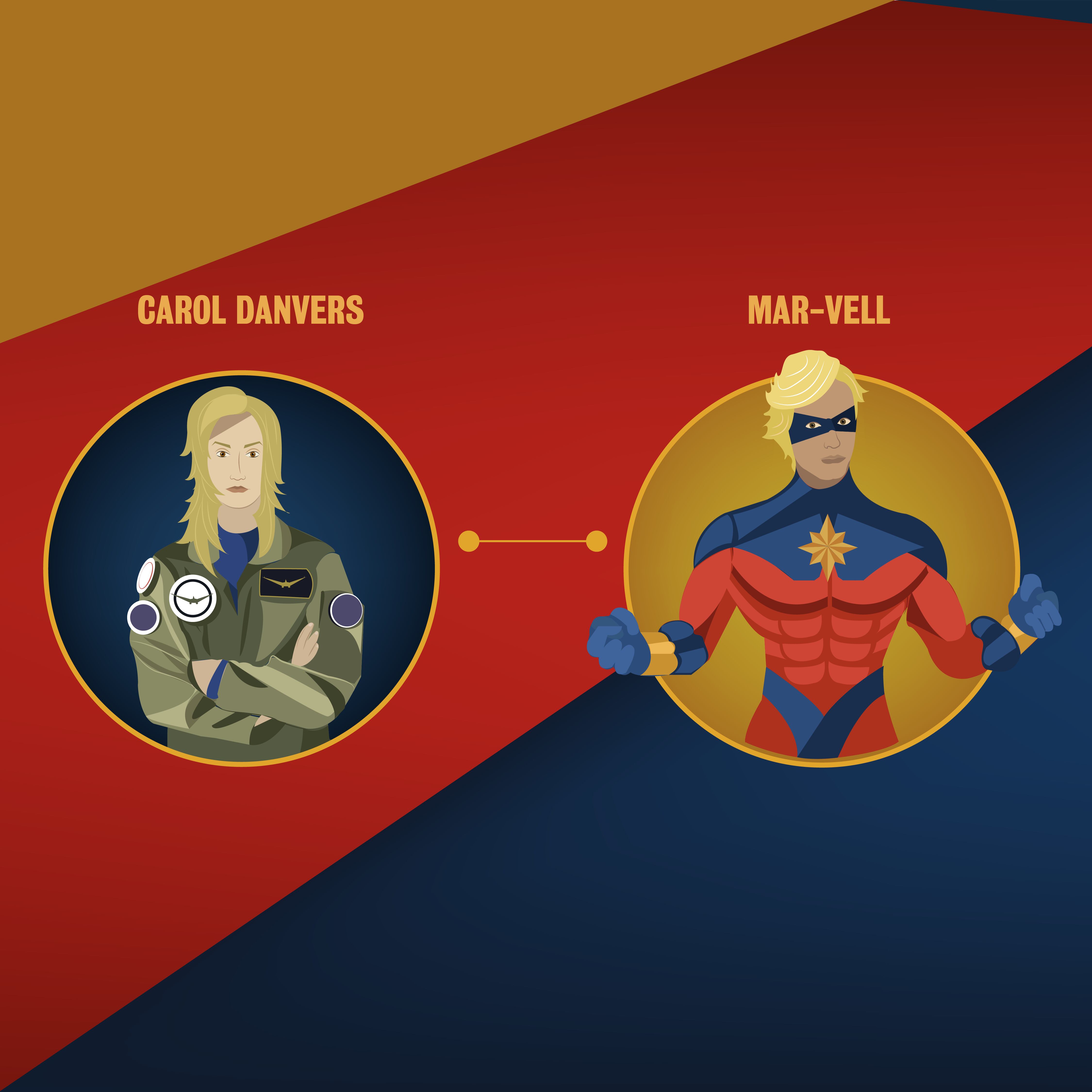 Carol Danvers era una piloto de la fuerza aérea y exagente de la CIA. Estos trabajos la llevaron a colaborar con la NASA, donde conoce a Walter Lawson, convirtiéndose en su colega.
