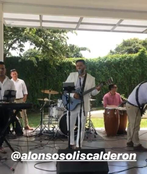 Los invitados disfrutaron de la música a cargo de María Fernanda León y un grupo de amigos músicos del morado. Además, Alonso tocó y cantó un rato para su esposa y amigos.