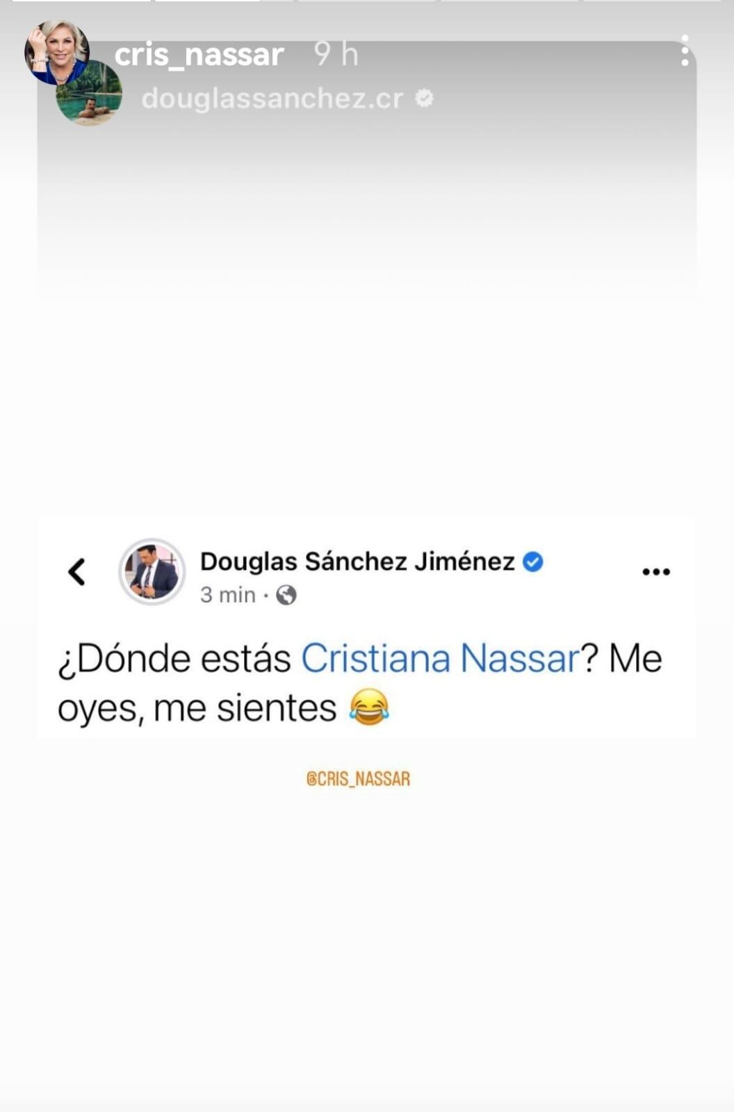 Primero empezó publicando en sus redes mensajes como: “¿Dónde estás Cristiana Nassar? Me oyes, me sientes”, junto a una carita de risas y etiquetando a la presentadora.
