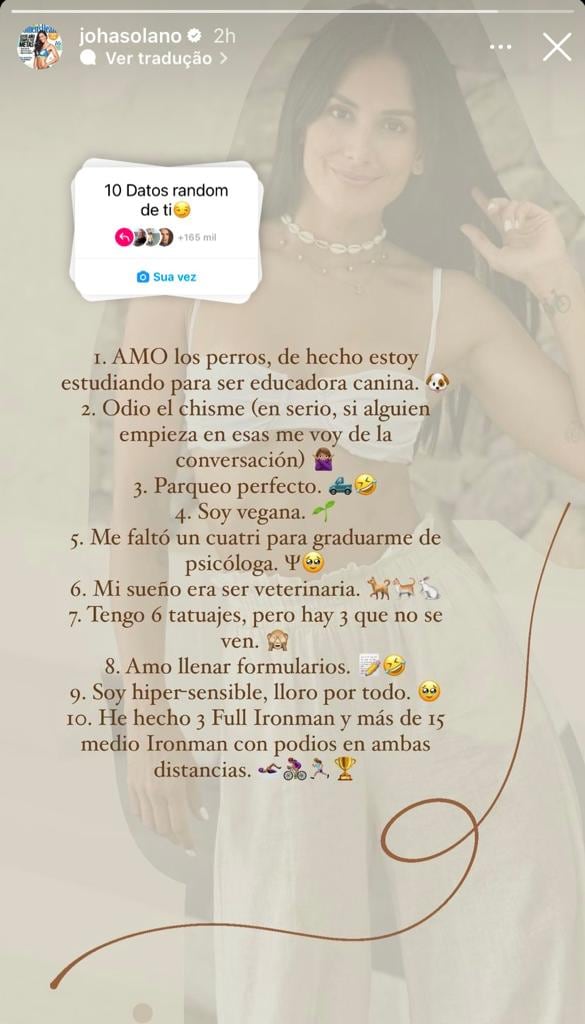Johanna Solano confesó algunas curiosidades suyas al sumarse a una dinámica que tiene de cabeza a las redes sociales.