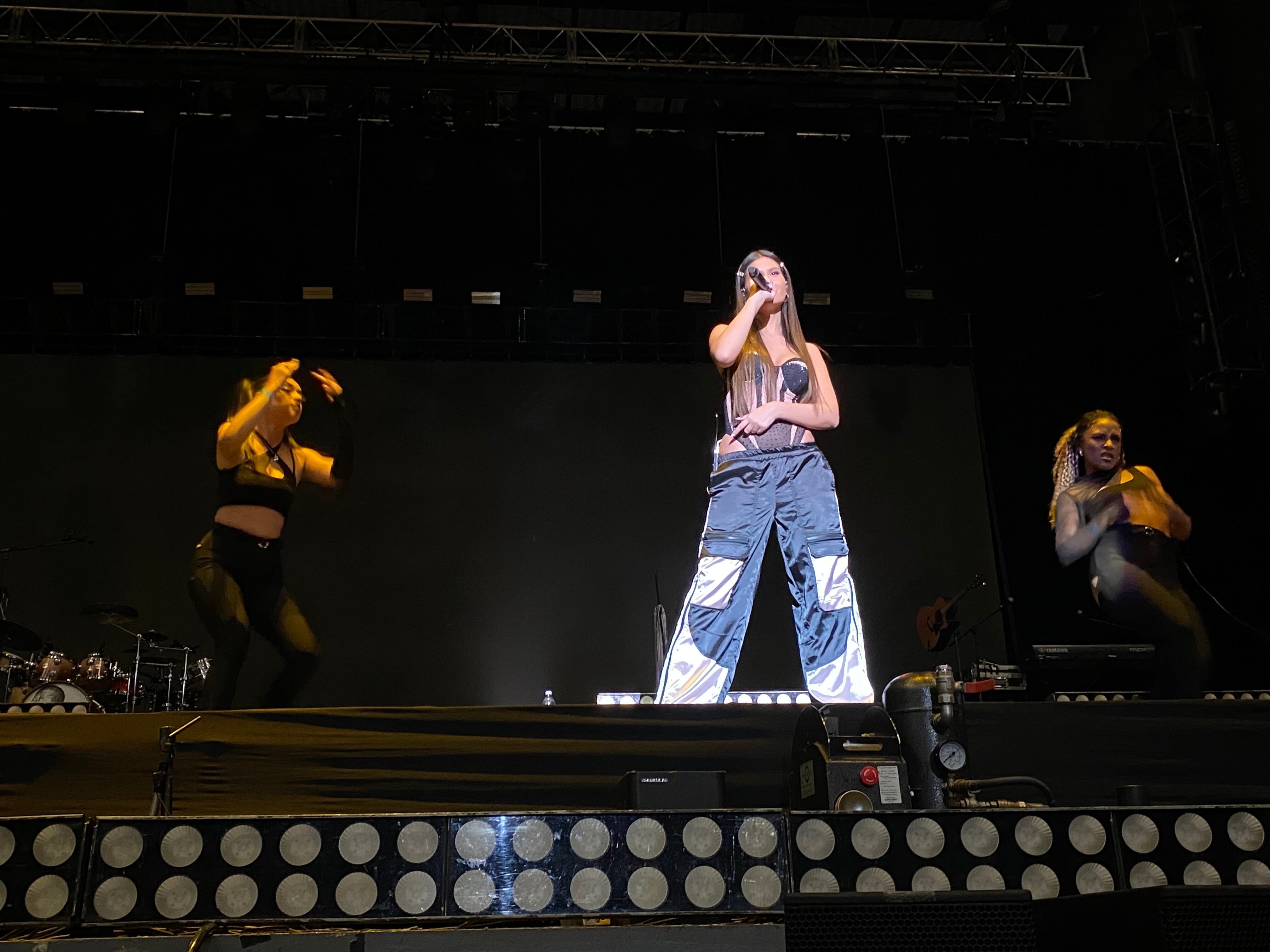 La muchacha de 23 años cantó alrededor de siete temas musicales, los cuales acompañó con provocadores bailes junto con su equipo de bailarines.