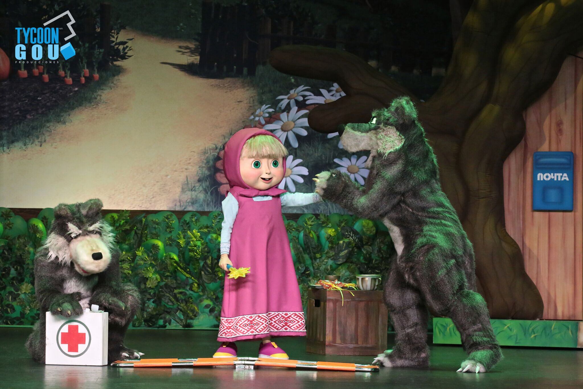 Los que vayan podrán ver a Masha y a personajes como el oso, el pingüino, los conejos y otros más en escena. Cuatro narradores de teatro van contando la historia.