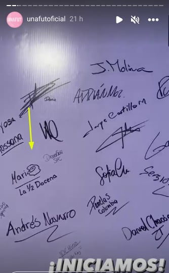 Entres los autógrafos de periodistas, jugadores y técnicos, destacó el de Mario, quien sustituye la “o” de su nombre con el dibujo de un huevo frito, en referencia al grupo de comedia, además de poner el nombre de la 1/2 Docena, por aquello de queden dudas.