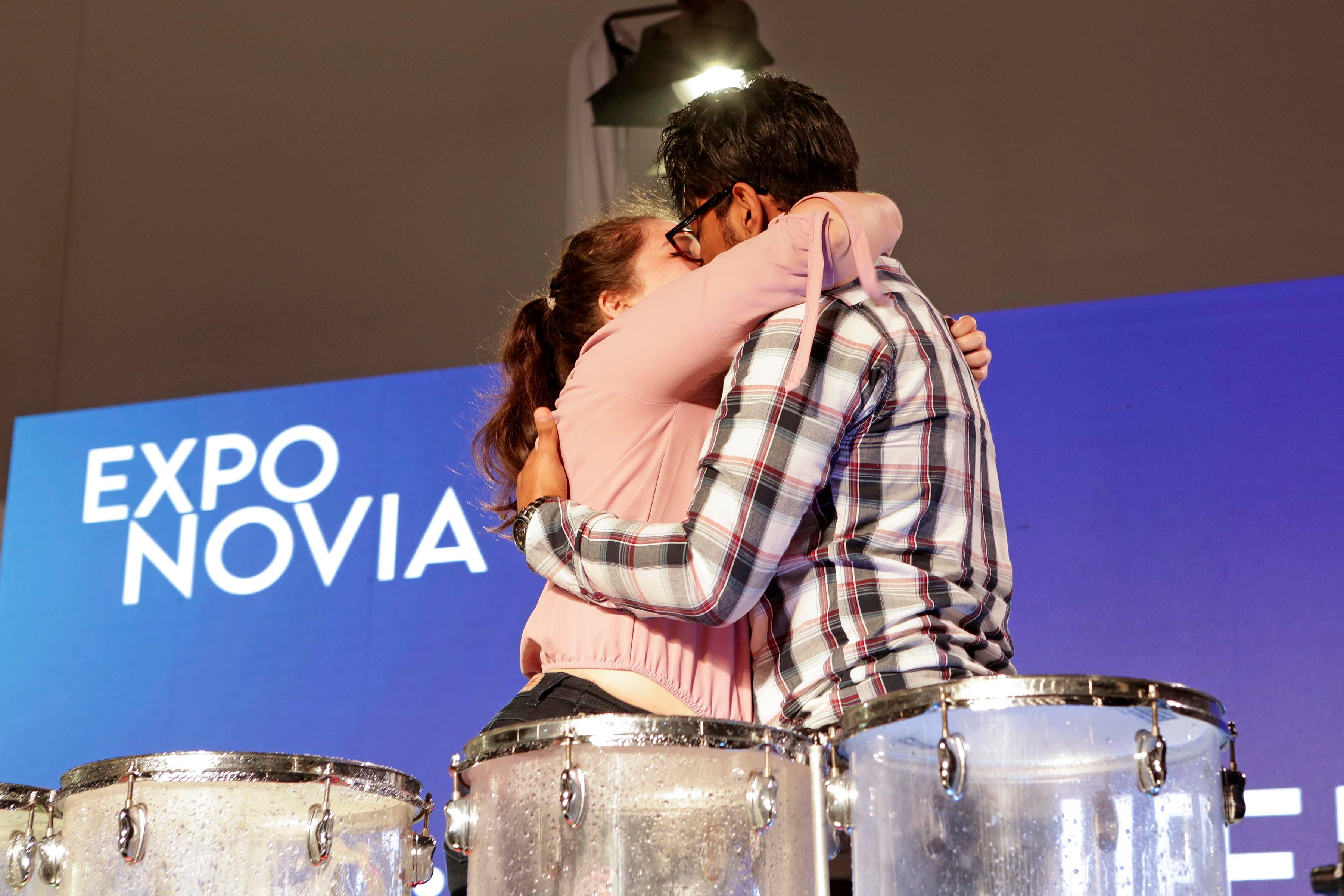 El plan del Joel fue meterse a “tocar” en medio de un show de electro percusión, para después tomar el micrófono y subir a su novia al escenario, y cantarle Mi Vida, del intérprete Divino y, finalmente, ofrecerle el anillo.