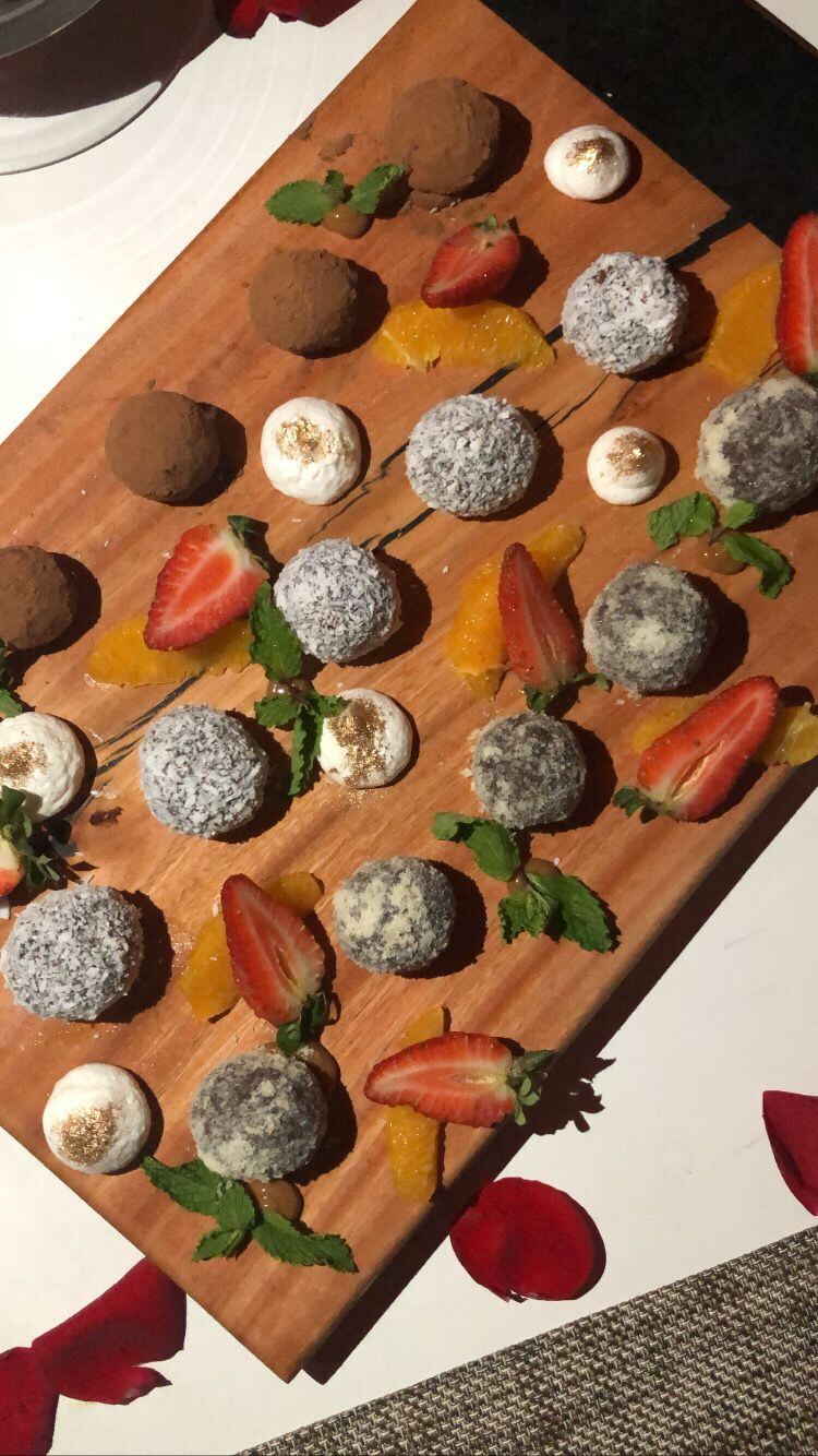 La cena también estuvo llena de detalles románticos, no faltaron los pétalos de rosas, los chocolates y las fresas para hacer de la velada más amena.