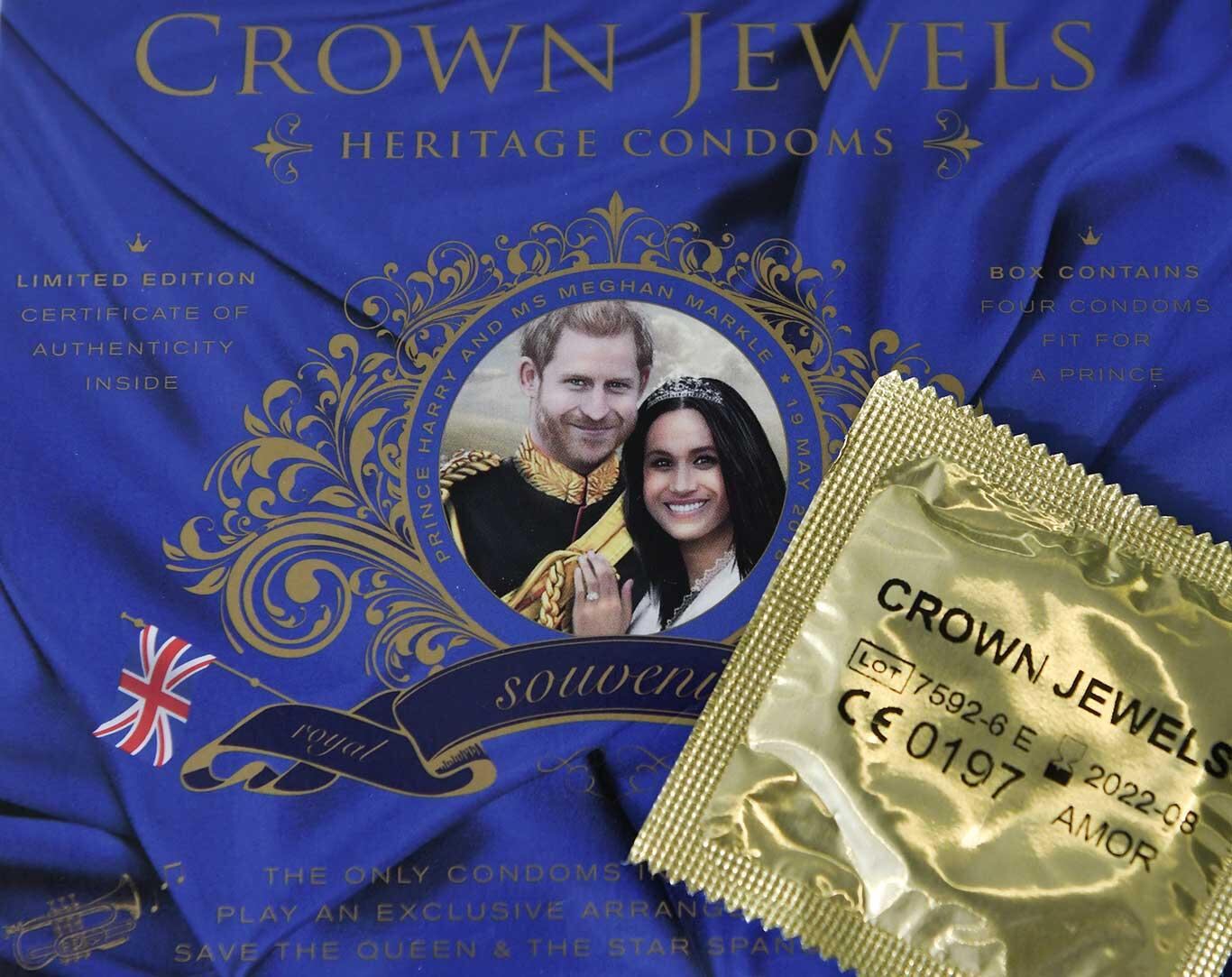 "Elegantes y cómodos" y fabricados con "un latex suntuoso": así son los preservativos de la marca "Las joyas de la corona". En recuerdo de la boda, la compañía fabricará una edición especial que irá en una caja que, al abrirla, interpreta los dos himnos nacionales de los novios.