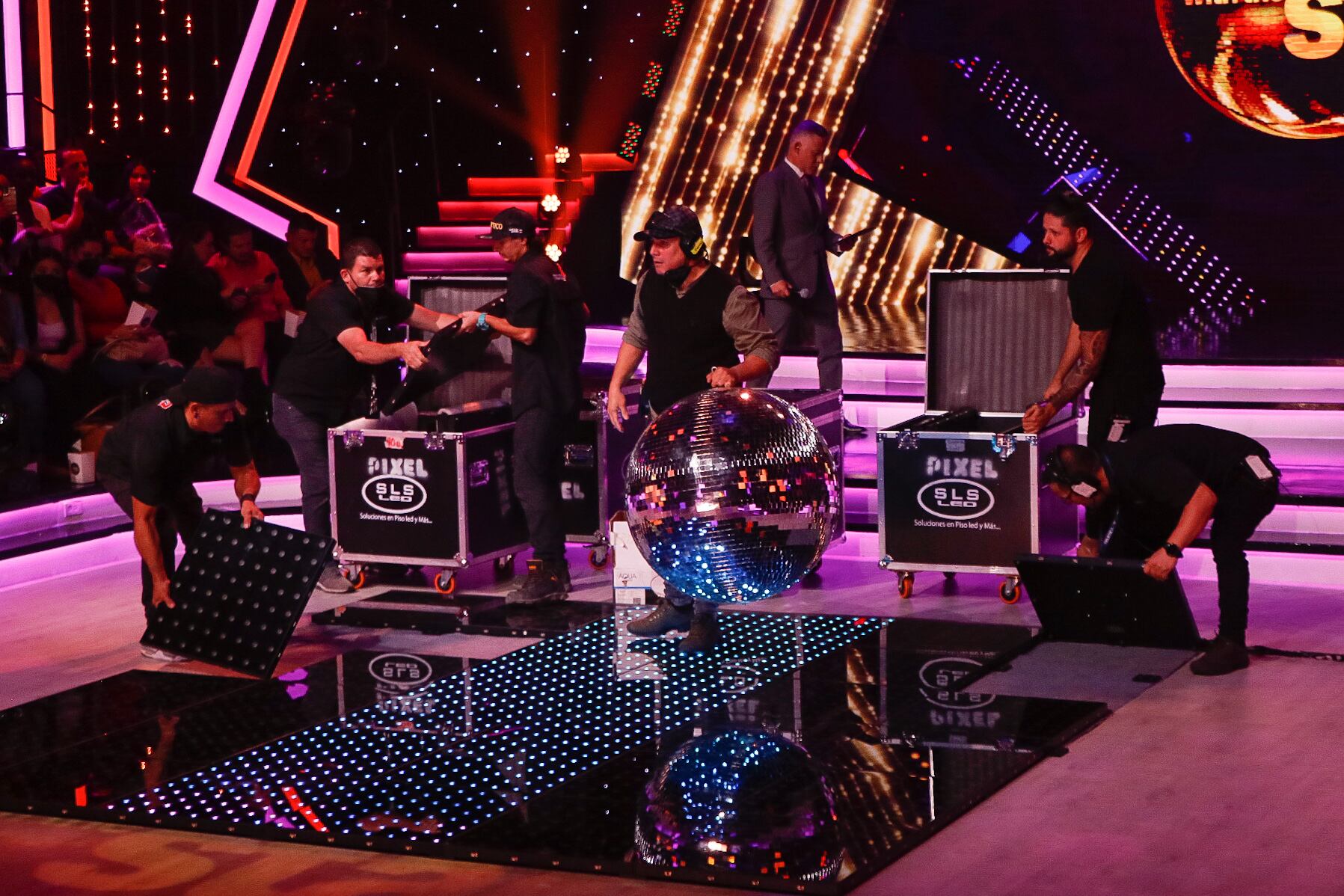 Como si fueran hormiguitas que ven un pastel mal puesto, en cuestión de dos minutos y medio, cerca de 15 o más trabajadores de Teletica aparecen a cada rato en la pista de Dancing with the Stars para montar y desmontar el escenario, entre la presentación de una pareja y otra.