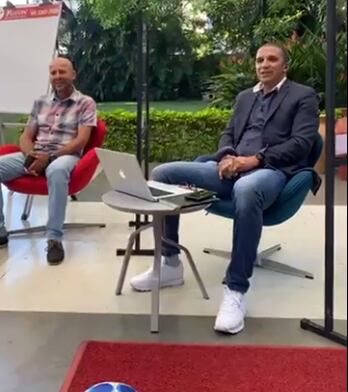 Le hicimos caso y el domingo anterior comprobamos que es cierto, no sabemos si por costumbre o porque le da pena que lo vean con lentes, pero el exportero apenas ve que la cámara lo va a enfocar se los hace casi que arrancados.