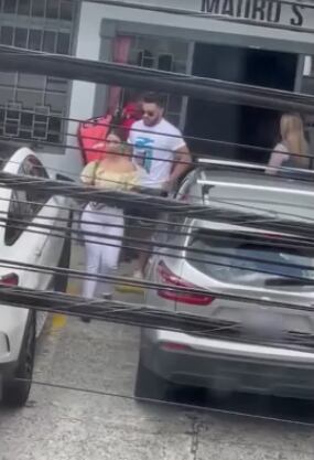 La guapa presentadora fue captada por un “paparazzi” mientras salía de un restaurante en las cercanías de Teletica junto a su pareja, el empresario Anthony Ramírez. Luego se montaron al carro Mercedes Benz que él conduce y se van, ella no se dio cuenta que la estaban grabando.