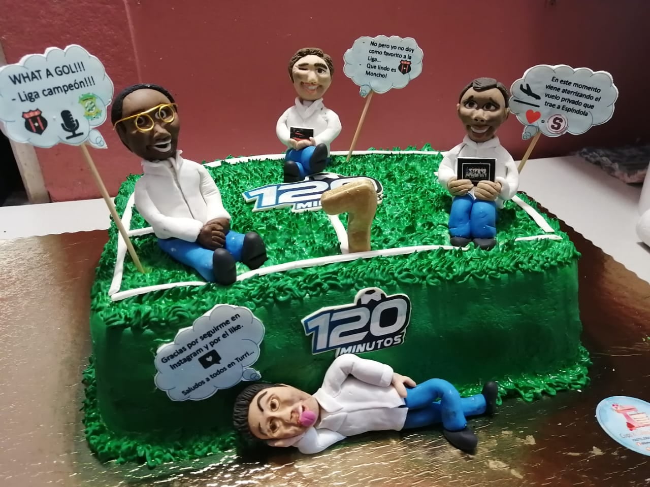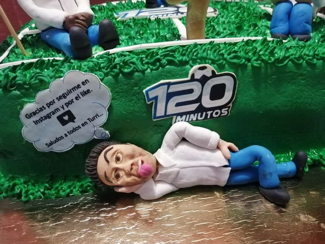 Duró cerca de nueve horas para tener listo el diseño, que tenía una cancha, el logo de 120 Minutos y las figuras comestibles de Maynor Solano, Pablo Guzmán, Harrick Mclean y Rodolfo Mora.