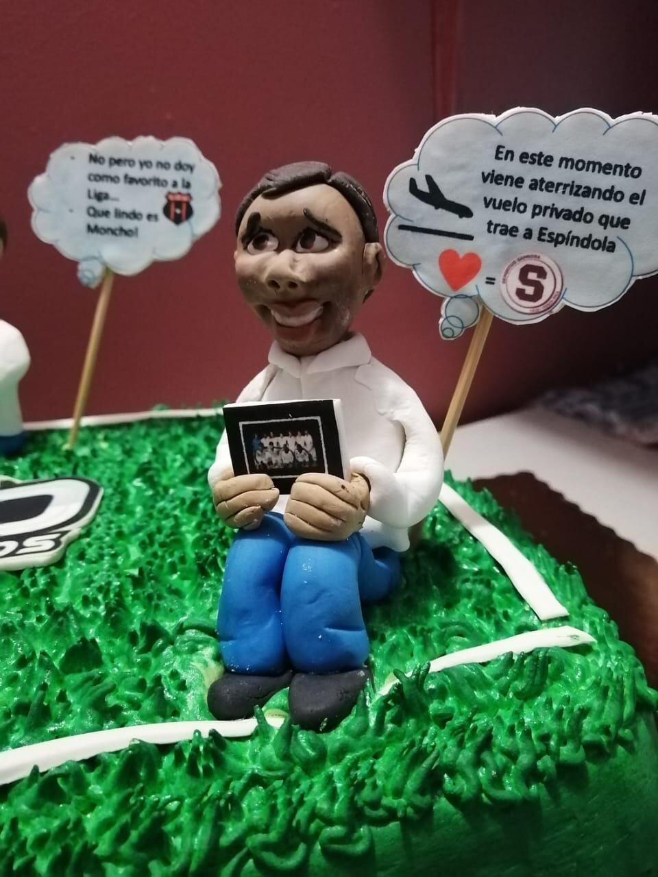 El vacilón es que a cada uno de los muñequitos les puso una nubecita con alguna frase vacilona, así como el escudo del equipo que más apoyan.