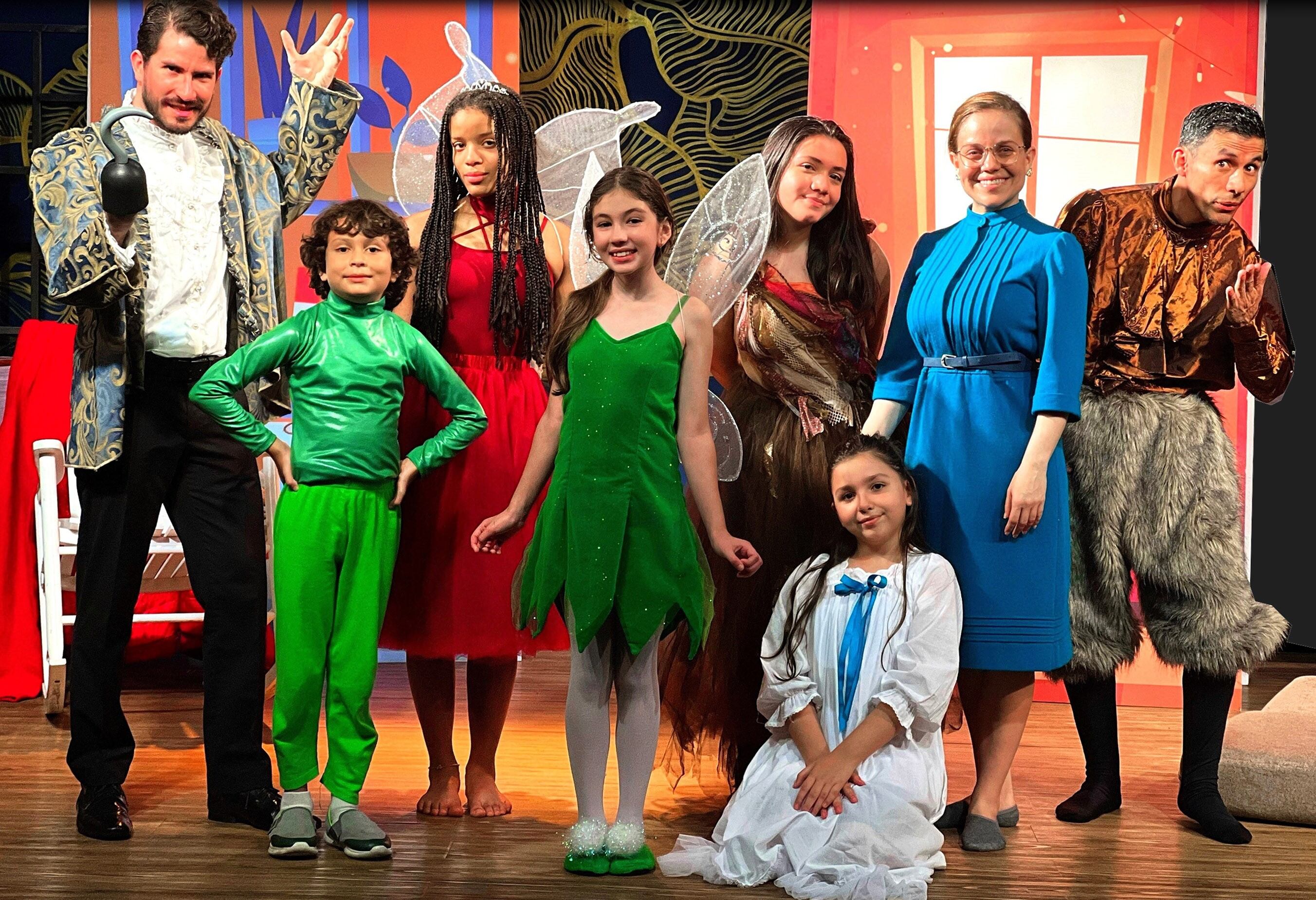 El elenco de la obra está conformado por Amanda Matarrita (Campanita), Sofía Chaverri (la nana), Jam Sanabria (Peter Pan y Andrés), Jonathan Echavarría (el guardalibros), Mariangel Hincapié (el hada artesana), Kaddy McCleair (la reina de las hadas), Isabella Vargas (Lucía) y Adrián Aymerich (papá y Capitán Garfio).