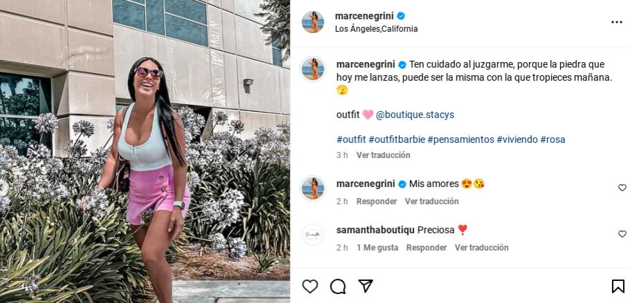 Marce anda de paseo en Los Ángeles, la ciudad donde viven muchísimas celebridades gringas, y fue desde esa tierra que mandó el filazo.