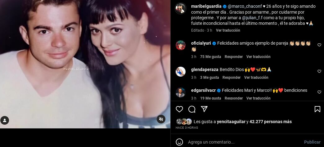 Pero además, Maribel aprovechó para agradecerle a su galán, quien es abogado, tanto amor que le dio a su hijo Julián Figueroa, quien falleció el 9 de abril pasado.