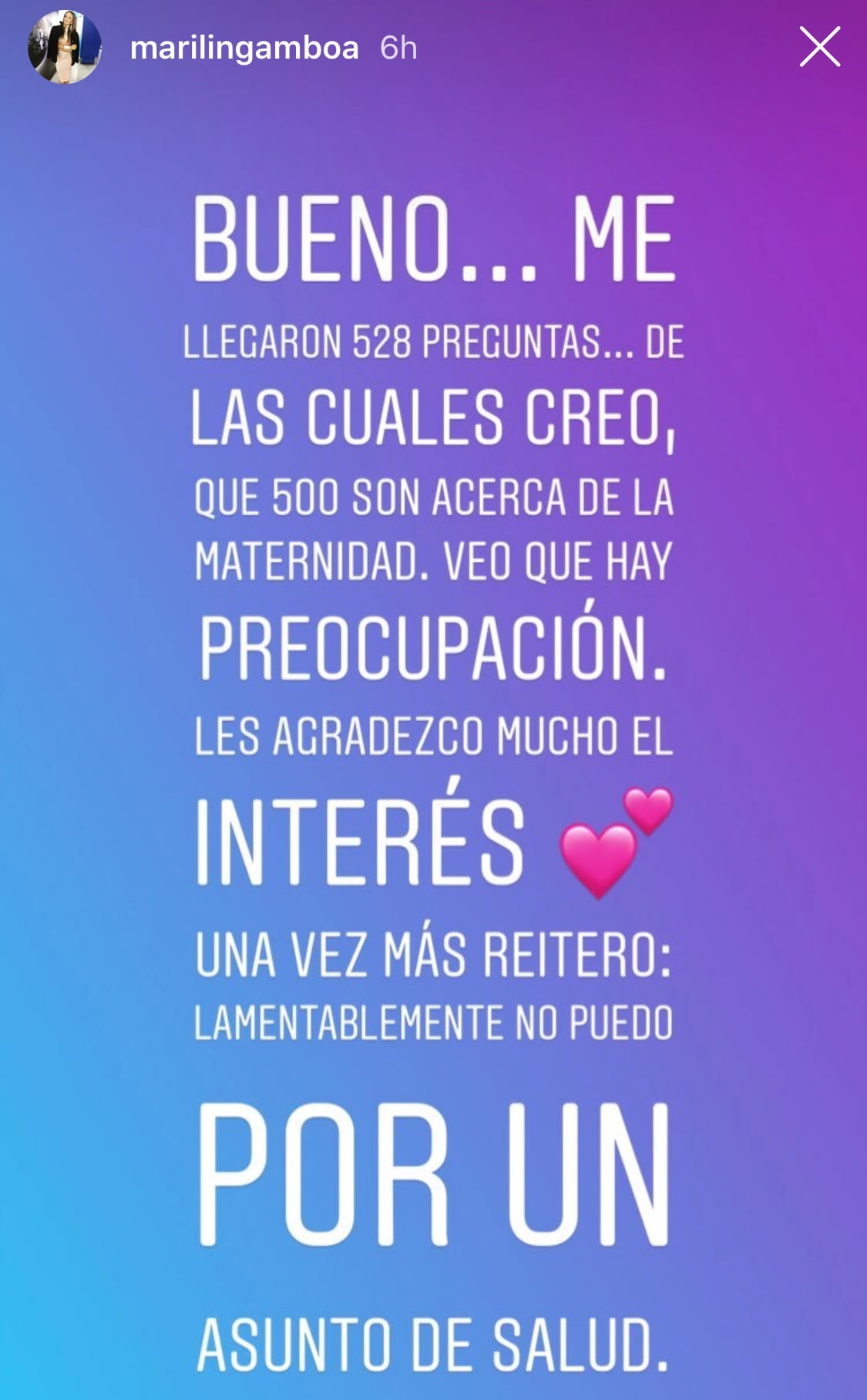 Gamboa, quien está casada con el empresario Ramón Aguilar desde el 2015, no ha logrado ser madre y, según contó, se debe a un problema de salud.