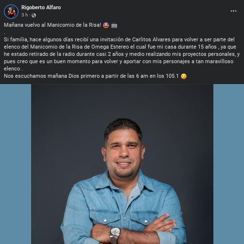 “En El manicomio inició en el 2006 y decidí salir después de 15 años para darle un espacio al proyecto de La Base Podcast, y ahora es volver para exponer personajes meramente radiales que no uso en La Base, pero estoy como la primera vez que me dieron la oportunidad y más feliz porque el brete es de lunes a viernes”, mencionó Alfaro a este medio.
