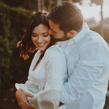 La intriga comenzó porque en la imagen su marido la tiene abrazada de la cintura, pero ambos tienen sus manos sobre el vientre de María. Y para terminarla de hacer, María acompañó la imagen con el mensaje: “Muuuchas 🦋 (mariposas)”, sin dar más detalles.