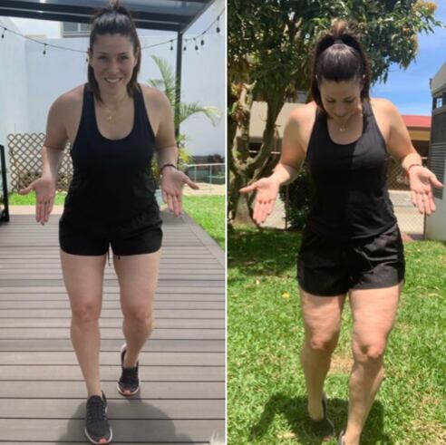 “Esa soy yo, feliz en mis primeros shorts que me compré hace unos días para hacer ejercicio en casa. Sí, siempre he tenido celulitis y siempre la he escondido, por dicha soy alta y las faldas largas y pantalones se convirtieron en parte de mi estilo. Pero detrás de la enagua, se escondía un gran complejo: mis piernas. Hacer ejercicio ayudó a mi confianza, aunque ella (la celulitis ) nunca desapareció”, comentó.