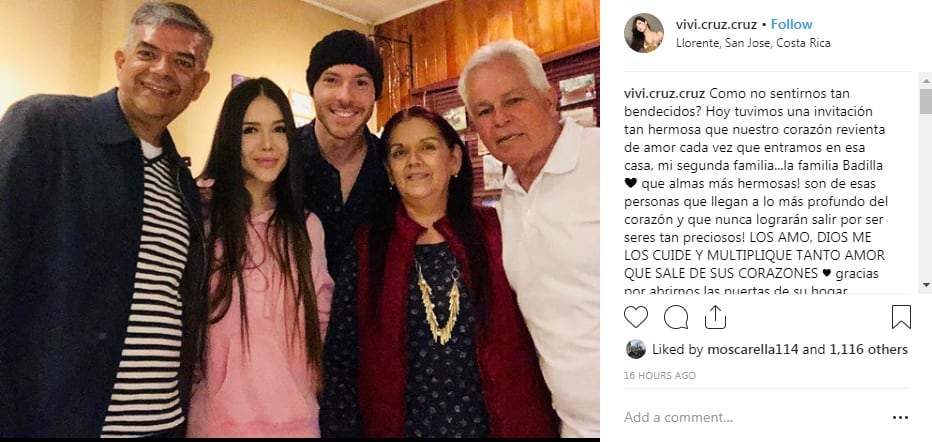 “Nuestro corazón revienta de amor cada vez que entramos en esa casa. Mi segunda familia… la familia Badilla. ¡Qué almas más hermosas! Son de esas personas que llegan a lo más profundo del corazón y que nunca lograrán salir por ser seres tan preciosos”, escribió Campos en sus redes sociales.