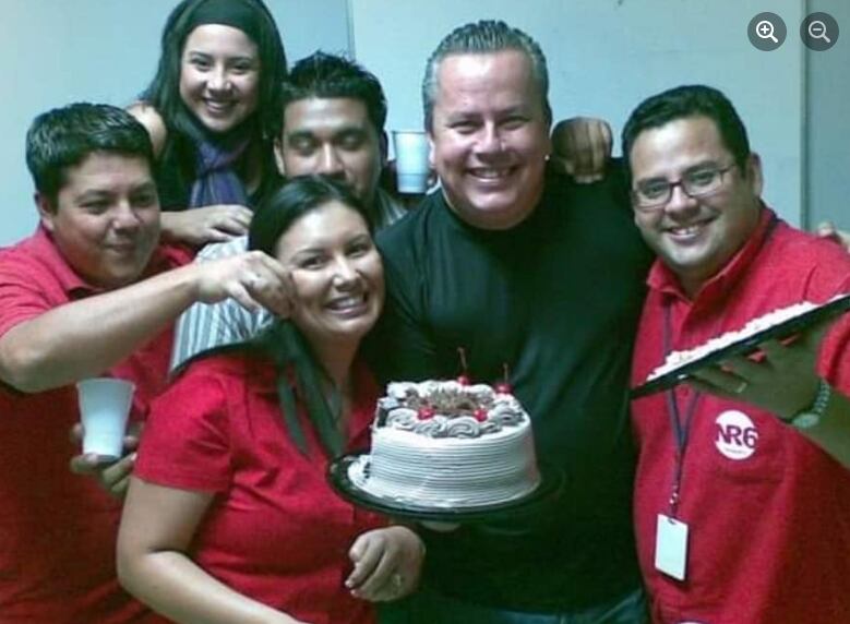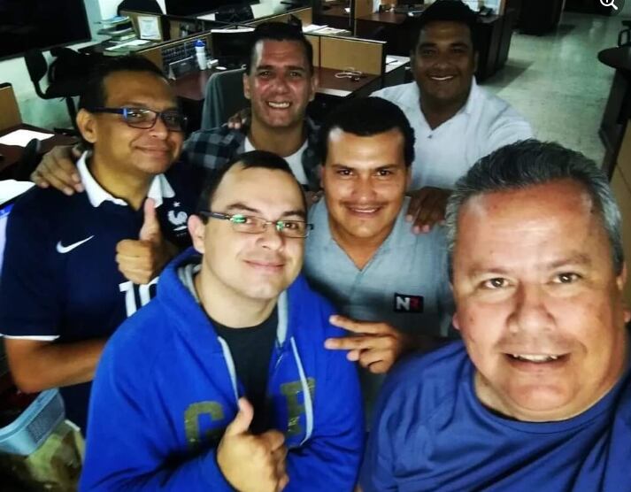 El exsucesero de canal 6 sale en las fotos en compañía de algunos camarógrafos, colegas, jefes y amigos de su juventud.