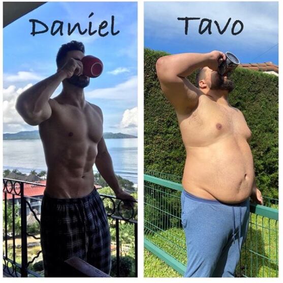 A Tavo se le ocurrió tomarse una foto con la panza pelada y hacer una comparación con otra foto que se había tomado su gran amigo, el modelo y bailarín Daniel Carvajal.