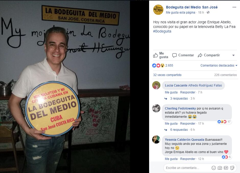 El famoso actor colombiano Jorge Enrique Abello visitó el martes un reconocido restaurante ubicado en La Sabana.