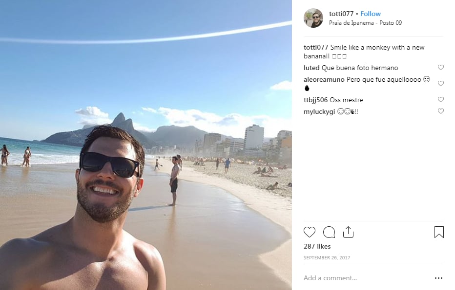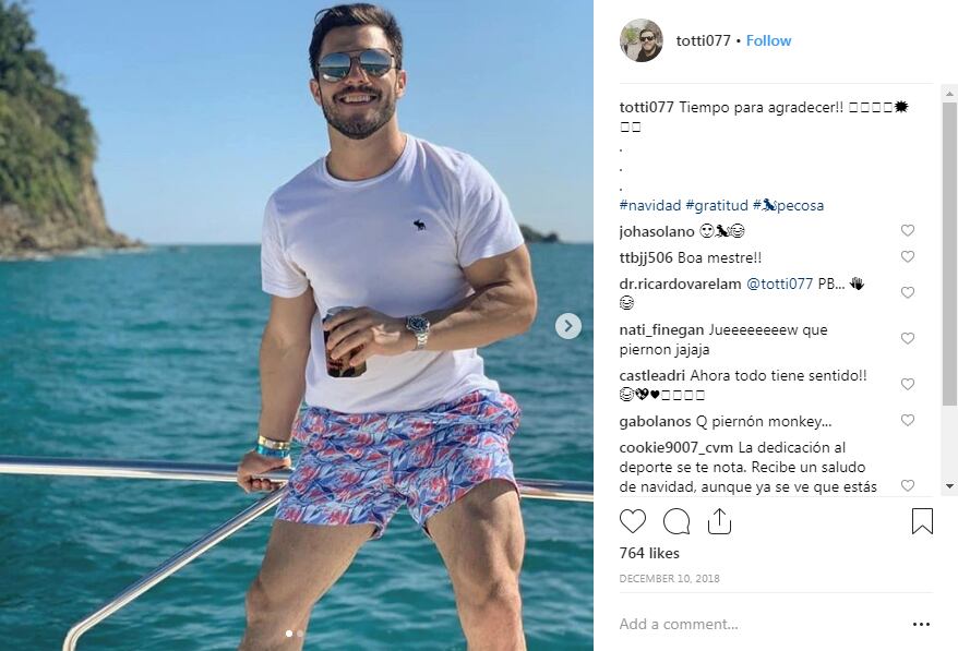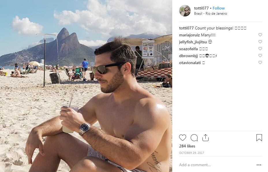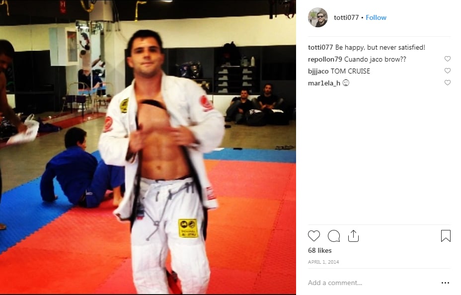 Totti, como le dicen sus amigos, comparte con sus más de 8.000 seguidores publicaciones en las que se observa su musculoso y tonificado cuerpo, y no es para menos, ya que el joven practica jiu jitsu.