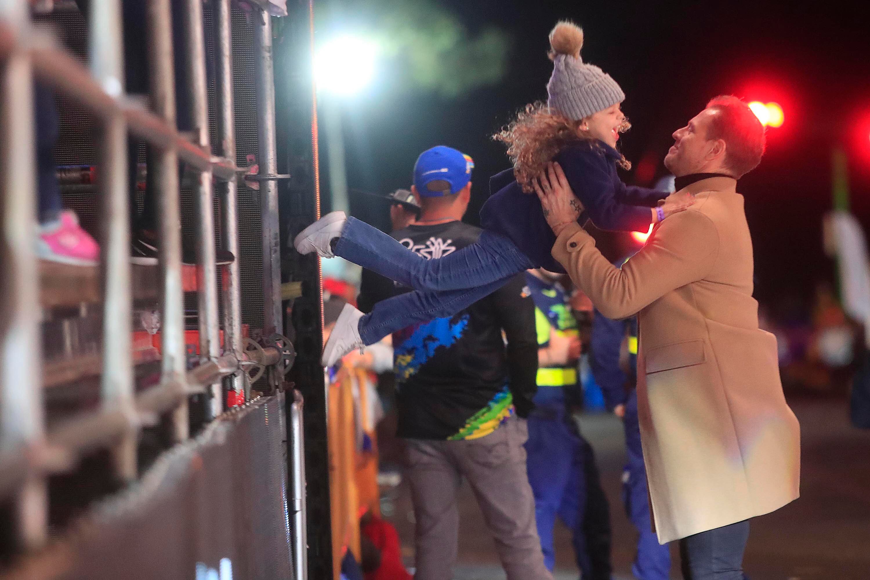 El momento se dio luego del espectacular juego de pólvora, al finalizar el desfile.
