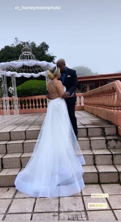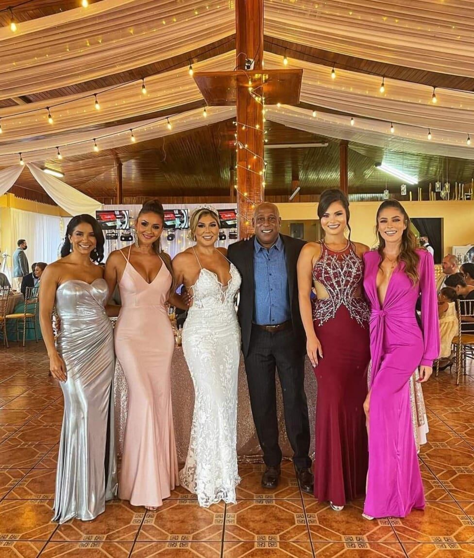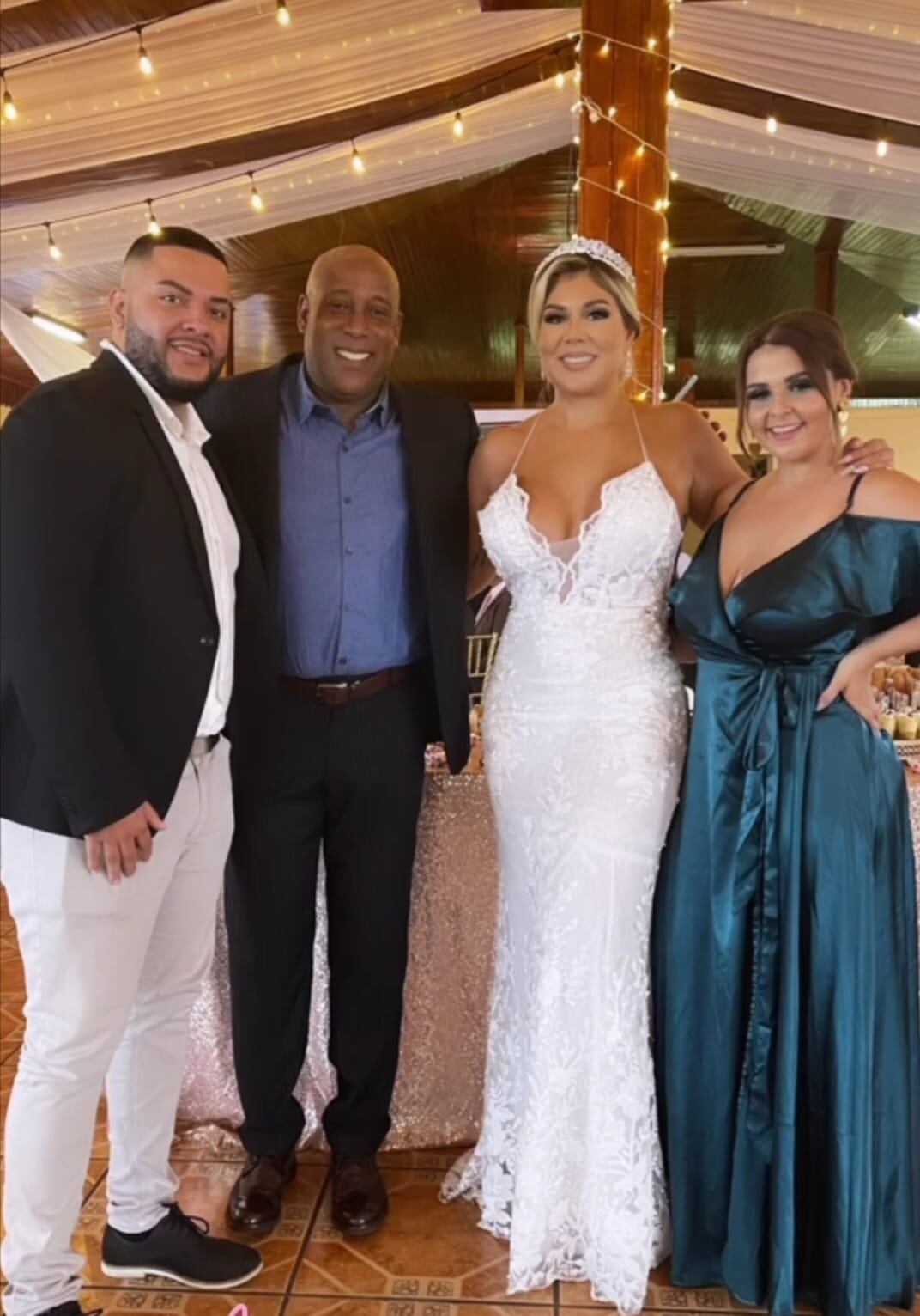 El Pelícano y su esposa, Ingrid Solís, se casaron en Santiago de Puriscal, donde creció la reina de belleza, a las 2 p.m., en el salón Estrella Madrigal, que es propiedad de la abuelita de la señora de Medford, en donde también armaron un fiestón.
