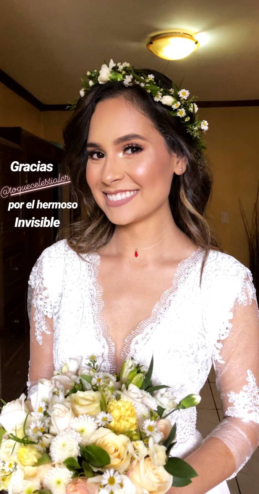 Caro vistió un sencillo vestido de encaje blanco, una corona de flores adornaba su cabeza y fue maquillada por un reconocido experto del país.