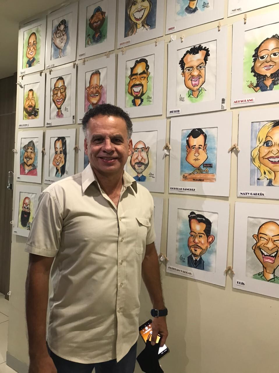 He hecho un par de trabajos para dos empresas diferentes, en los que he dibujado al personal y los ponen en una pared, para fechas especiales. Un día de estos dibujé a un compañero y pensé que sería bonito ponerlo en Multimedios y empecé a hacer varios y me salieron 50 en total, de todos los departamentos.