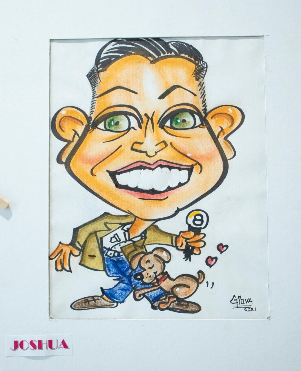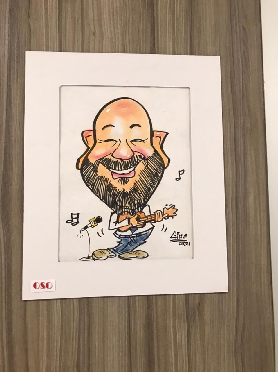 Digamos que hacer la caricatura por lo general es rápido, unos quince a veinte minutos, aunque hay algunos con los que se pega más y toca hacerlos varias veces, pero sí llevan su elaboración, los pinto y los pongo en un marquito de cartón para una buena presentación.