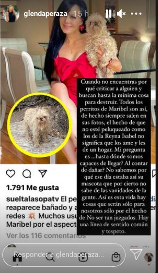 “Cuando no encuentras por qué criticar a alguien buscan la mínima cosa para destruir. Todos los perritos de Maribel son así, de hecho siempre salen en sus fotos, el hecho de que no esté peluqueado como los de la reina Isabel no significa que no los ame y les dé un hogar”, escribió.