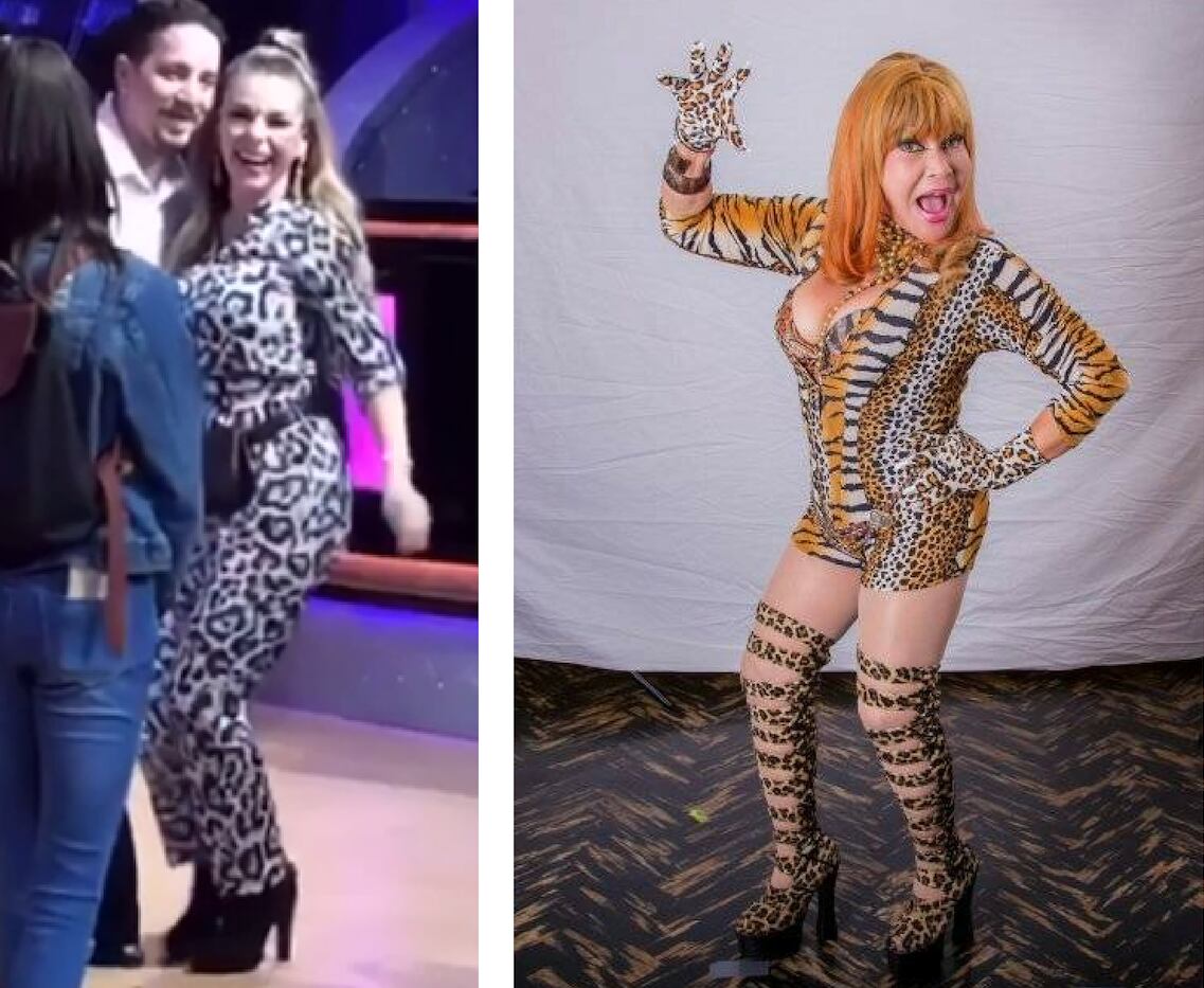 Cuando la guapísima Glenda Peraza llegó a la novena gala de Dancing with the Stars todos los presentes en el Marco Picado la volvieron a ver. Ella lució una llamativa vestimenta que se robó la atención: andaba un enterizo de leopardo, lentes transparentes y tacones. ¿A quién le recuerda?