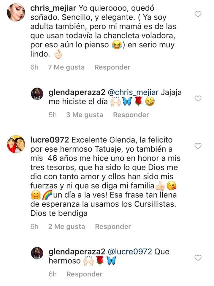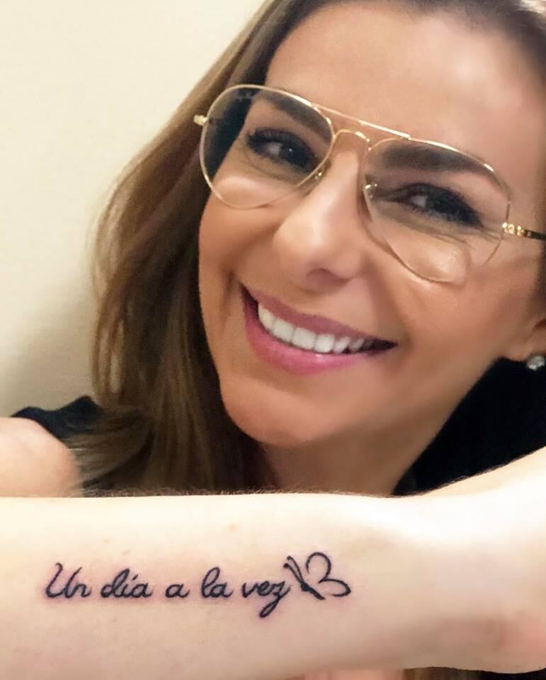 Este sábado, Peraza se armó de valor y se animó a ponerse algo de tinta en su brazo con una frase de vida muy especial para ella y decorada con una mariposa. ¿Cuál es la frase que escogió Glenda?