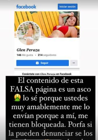 “El contenido de esta falsa página es un asco, lo sé porque ustedes muy amablemente me lo envían, porque a mí me tienen bloqueada. Por fa, si pueden denunciar se los agradezco. Ya saben, hay gente para todo”, escribió en su cuenta oficial, Glenda Peraza.