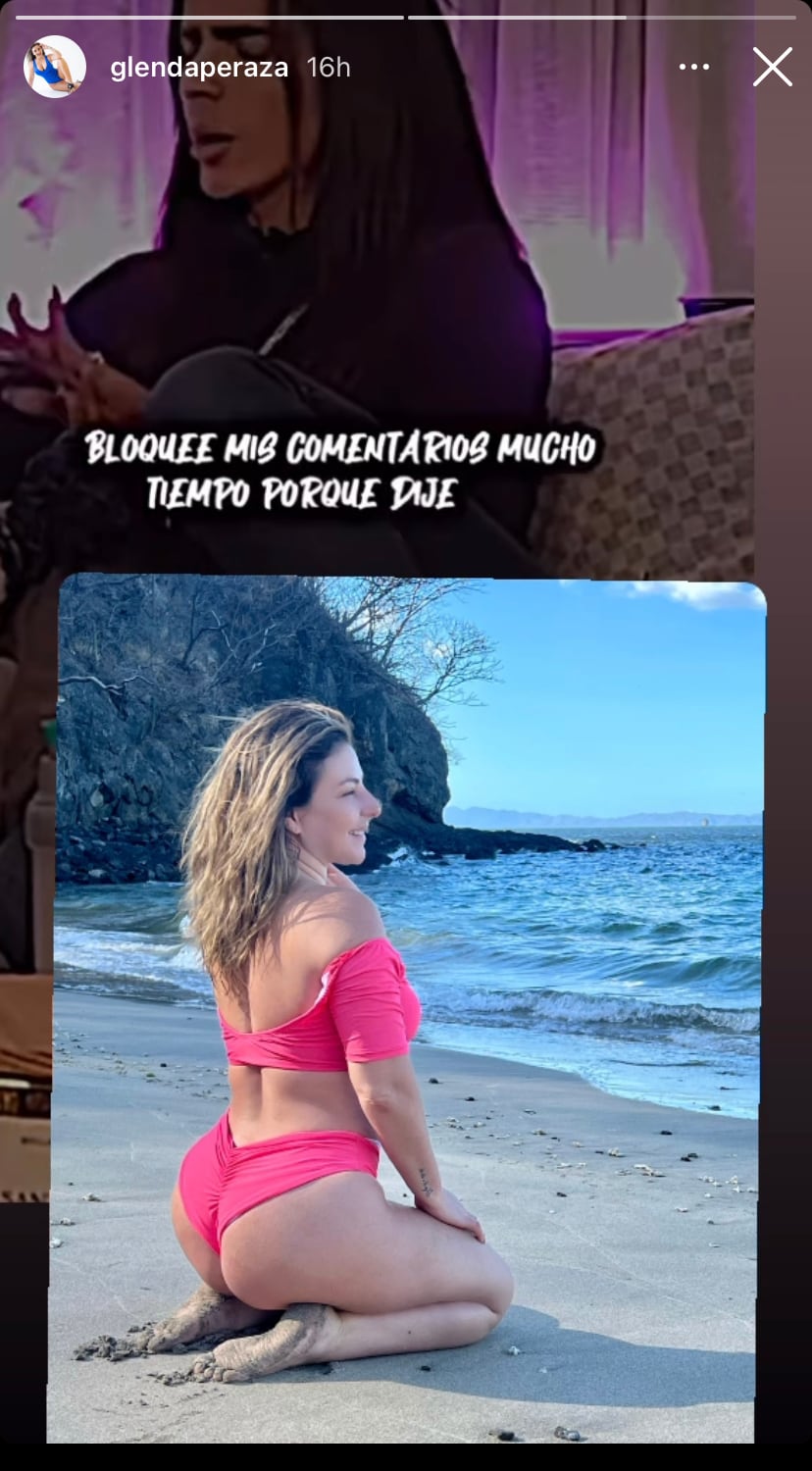 Peraza compartió en sus historias en Instagram un pedazo de una entrevista que un presentador mexicano le hizo a una actriz de ese país, en la que ella habla de que le dejó de importar lo que piense la gente de ella y para hacer el filazo más directo, Glenda puso en una esquina del video una fotografía suya muy provocativa.