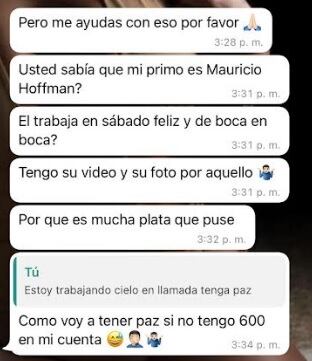 El que me envió un comprobante falso se enojó y me inventó un cuento diciéndome que él es primo de Mauricio Hoffman y que tenía videos y fotos mías, como tratando de extorsionarme. Entonces lo que hice fue bloquear todos esos números.