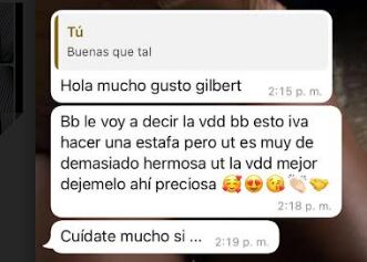 Otro me dijo que me iba a hacer un pago en línea pero me pedía que accesara a un link que él me iba a dar para que me llegara el depósito y eso era para hackearme la cuenta y hubo una que fue demasiado graciosa.